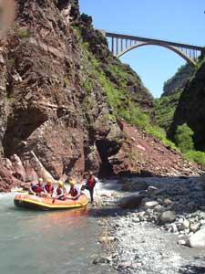 Déroulement Rendez-vous à 14h00 à Daluis ( voir plan du rendez-vous). Accueil des participants par les guides d'ABOARD Rafting, puis remise des équipements et briefing pour une descente du Var par les Gorges de Daluis en raft, depuis Guillaumes jusqu'à Daluis (environ 15 km et 2h30 de navigation). Ce parcours permet la découverte des gorges de Daluis. Ces gorges de roches d'une beauté exceptionnelle offrent un contraste surprenant à la couleur verte de la végétation environnante. Le début du parcours est facile et permet une initiation progressive à l'activité. Les gorges se profilent ensuite et les virages rebondissants sur les falaises se succèdent. Des rapides marqués (classe II et III) (voir la classification des rapides) ponctuent la descente. Nous ne manquerons pas de faire une pause pour admirer la cascade de la clue d'Amen, avant de repartir à travers les gorges rouge brique. Nous attendrons finalement la sortie des gorges, où nous débarquerons.
